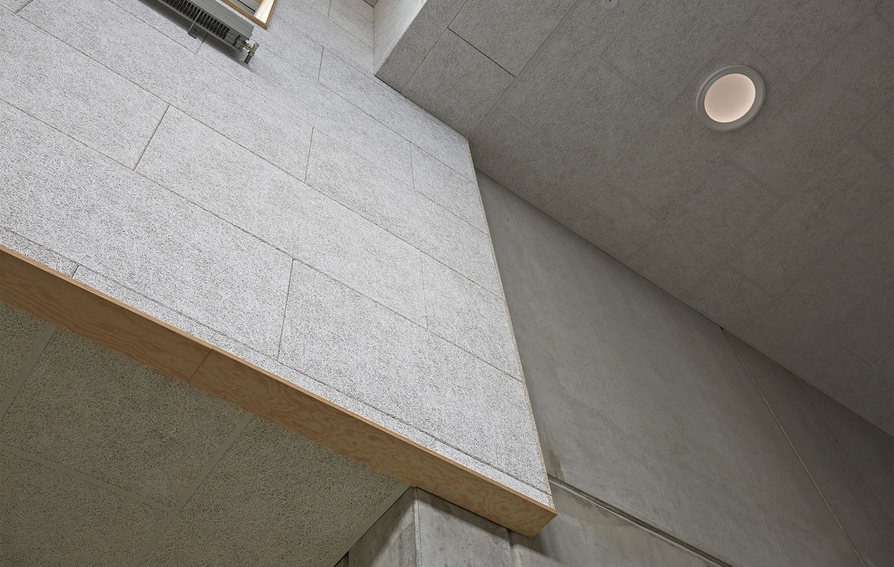 Hard, smooth surfaces like concrete and plaster result in long reverberation times, while materials with an open surface structure – such as Troldtekt acoustic panels – result in short reverberation times and thus excellent acoustics.